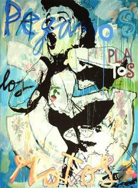Title: Pegamos lop platos rotos Year: 2002 Medium: Acrylic on canvas Dimensions: 150 x 110 cm Gallery: Canvas Art Services