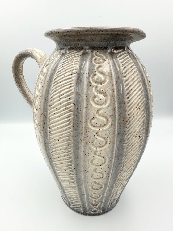 West Germany vase with relief, gray with brown speckles. Marked 1896/25