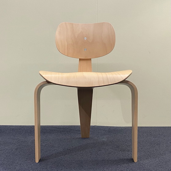 Wilde + Spieth 3-Legged Dining Chair Jointly developed by Egon Eiermann and Wilde + Spieth, the SE 42 3-legged chair features a unique three-legged frame constructed entirely of molded wood. This complex design, combined with Eiermann's commitment to minimizing the bending radius of the front seat, pushed the boundaries of production techniques in its realization. Seventy years after its first appearance, the chair, with its flowing curves and assured posture, remains a modern classic. Design: Egon Eiermann, 1949 SE 42 natural beech