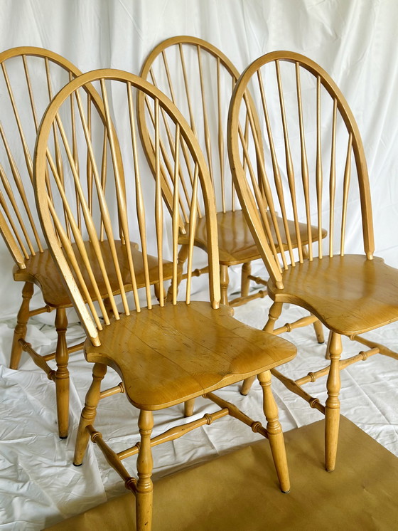The color, the wood, and the shape; what exceptionally beautiful chairs! And here are four of them, so you immediately have enough chairs for a dining table. They're fun to mix and match with existing chairs, but also perfect as a complete set.