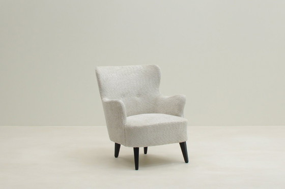 Wingback chair by Theo Ruth for Artifort, 1950s Netherlands. Theo Ruth (1915- 1971) was one of the pioneer designers of Artifort. This classic model is reupholstered in a fine white teddy fabric and has black solid wooden legs. In very good condition.