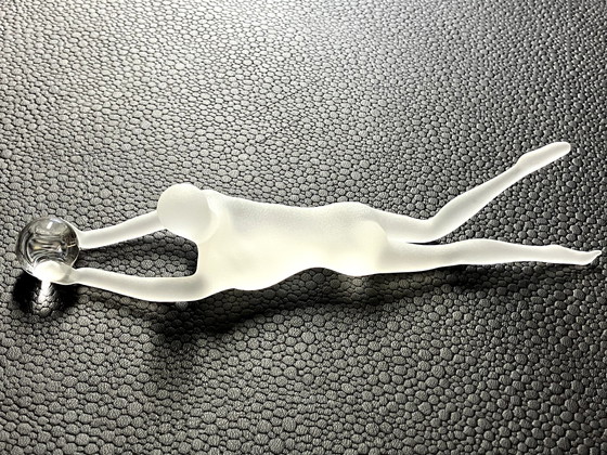 Own design and creation glass blowing in my studio of a gymnast with ball (rhythmic gymnastics). See other ads of my creations. Head is translucent glass and body I sandblasted.