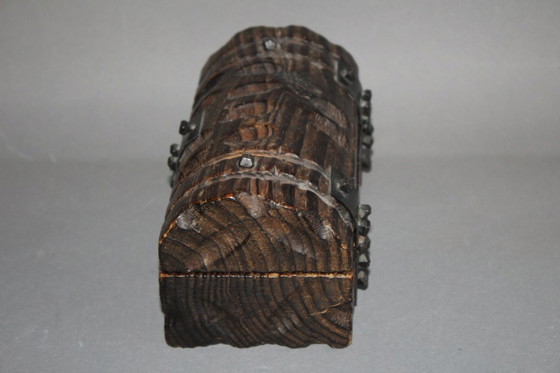 This hand-carved wooden box, crafted from solid dark wood, adds a touch of vintage charm to any room. Ideal for storing jewelry or small treasures, it impresses with its robust construction and artful metal fittings. Perfect for lovers of handcrafted and unique decorative pieces.