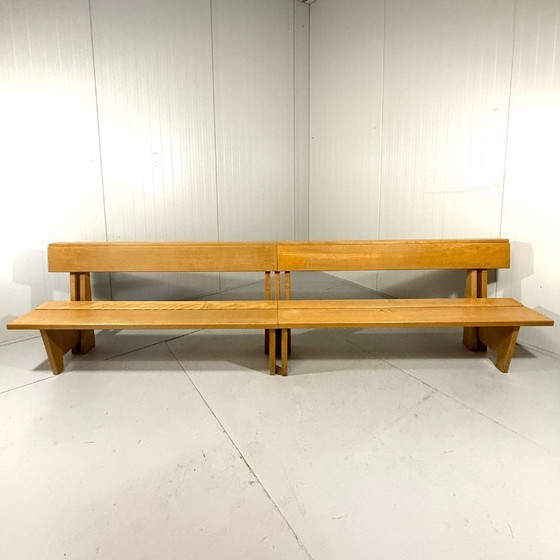 ConditionGoodColorsBeige, BrownMaterialWoodNumber of items1Height86 cmWidth350 cmDepth52 cmSeat height43 cmSigns of usageStains, Scratches