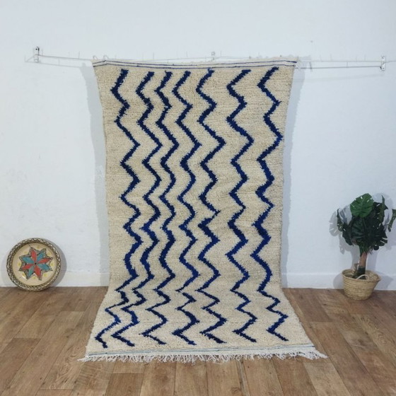 Give your interior a stylish and dynamic look with this handmade Berber rug, a perfect combination of traditional Moroccan craftsmanship and modern design.