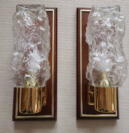 Pair of vintage double wall lights, Hans-Agne Jakobsson model V 149/2, brass and smoked glass, Sweden, 1970
