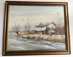 Globe pendant light in screen-printed glass with floral motifs - mid-20th century
