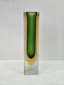 Murano glass soliflore in twisted green opaline glass, 1960s