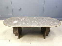 Vintage travertine and brass coffee table by Fedam, 1970s