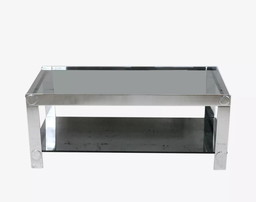 Vintage Coffee Table in Smoked Glass, Black Metal and Cast Aluminium from the 70s