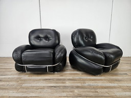 2 x Cognac Color Beef Leather Club Chair with a Finishing with Decorative Nails