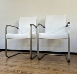 2x White leather design chairs