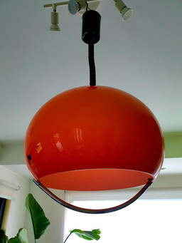 Vintage plexiglass space age pendant lamp, orange and white, probably 1970s