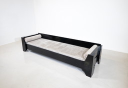 Modernist Sofa / Daybed, Black Wood And Fabric, 1960S