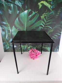Side table made of perforated steel.Side table made of perforated steel.
