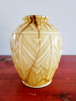 Art deco opaline glass vase with relief, probably Verreries de Scailmont, Henri Heemskerk, BelgiumArt deco opaline glass vase with relief, probably Verreries de Scailmont, Henri Heemskerk, Belgium