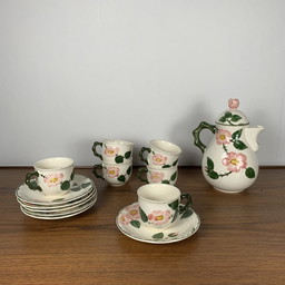 Set Of 6 Coffee/Tea Cups + Saucers And 1 Teapot/Coffee Maker Villeroy & Boch, Wild Rose Model 1970Set Of 6 Coffee/Tea Cups + Saucers And 1 Teapot/Coffee Maker Villeroy & Boch, Wild Rose Model 1970