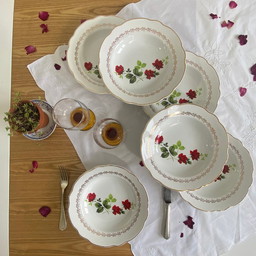 6 antique Badonviller earthenware dessert plates with flowers and gilding