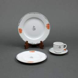 Raymond Loewy (1883-1986) Set Of 4 Tea Cups And Saucers, Rosenthal Continental China, Script Decor