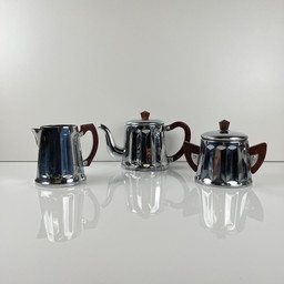 Vintage chrome-plated metal and bakelite coffee set, 1940s/50s