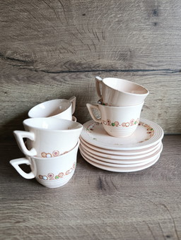 6 Art Deco cups and saucers, 1930s, Betty model from Longwy - France