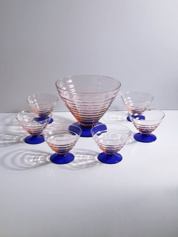 Art Deco Bowl Set Dessert Bowl Italy Empoli 1930s 1940s Cobalt Blue Rosalin Ice Cream Cup Glass Vintage 1980s