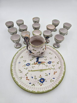 Moustiers set - Plate, Pot And 15 Egg cupsMoustiers set - Plate, Pot And 15 Egg cups