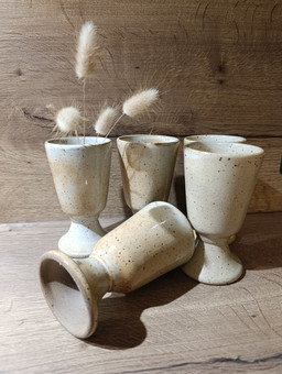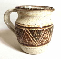 1 jug and 4 mugs from the 50s 60s by Gotlind Weigel. Ceramic. Good used condition. Some chips to the rim