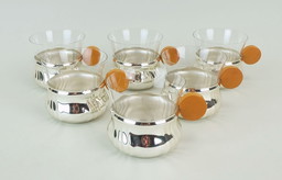 6 tea glasses in chrome-plated metal holders with bakelite handles, art deco, 1930s 40s