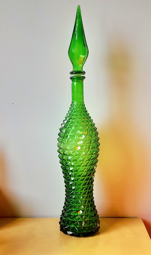 Olive green glass jug, Italian design, 1960s, made in Italy