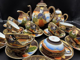 Vintage Satsuma - Hand-painted fine porcelain coffee set for 10 people