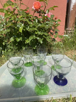 Set of 6 Vintage Amber-Stemmed Water Glasses, France
