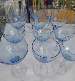 Set of 6 Ice Cream Coupe Glasses France Blue Glass
