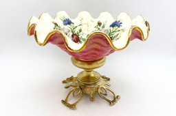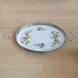 1930s rotatable cake platter glass chrome cake plate with flower decor