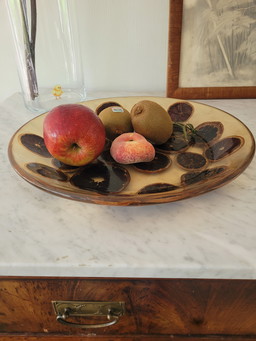 Lazy Susan / Serving Tray - Teak Wood and Multi-Colored Ceramic Bowls - 1970s Scandinavian Design