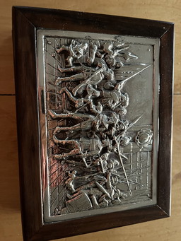 Silver/Wood Cigar Box in Fine High Relief and Detail of the Scene Visible