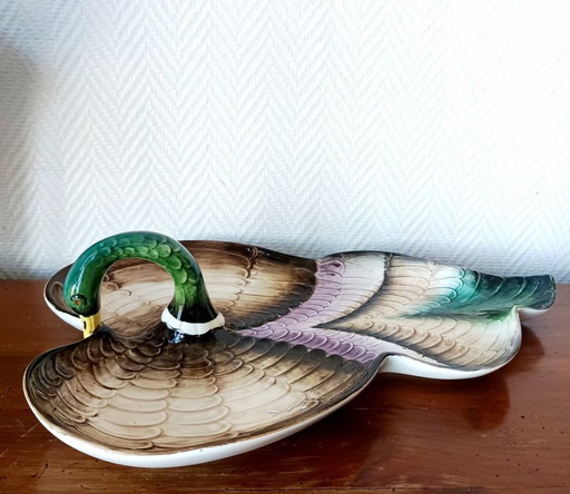 Large duck-shaped earthenware pitcher from Saint-Clément – signed – vintage