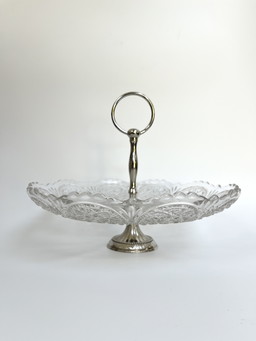Vintage Pressed Glass & Metal Serving Tray – France, 20th Century