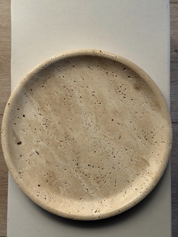 Small round travertine marble serving platter / travertine marble tray – minimalist design