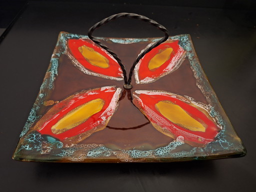 Yellow glass dish made in France