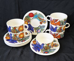6 x Acapulco Villeroy & Boch soup cups + saucers with blue V&B logo6 x Acapulco Villeroy & Boch soup cups + saucers with blue V&B logo