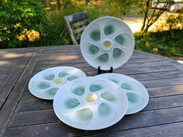 4 oyster/shellfish plates, Salins earthenware / France 1960
