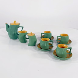 Moucheté Stoneware Coffee Service Tulowice Style Mid - Century XXe